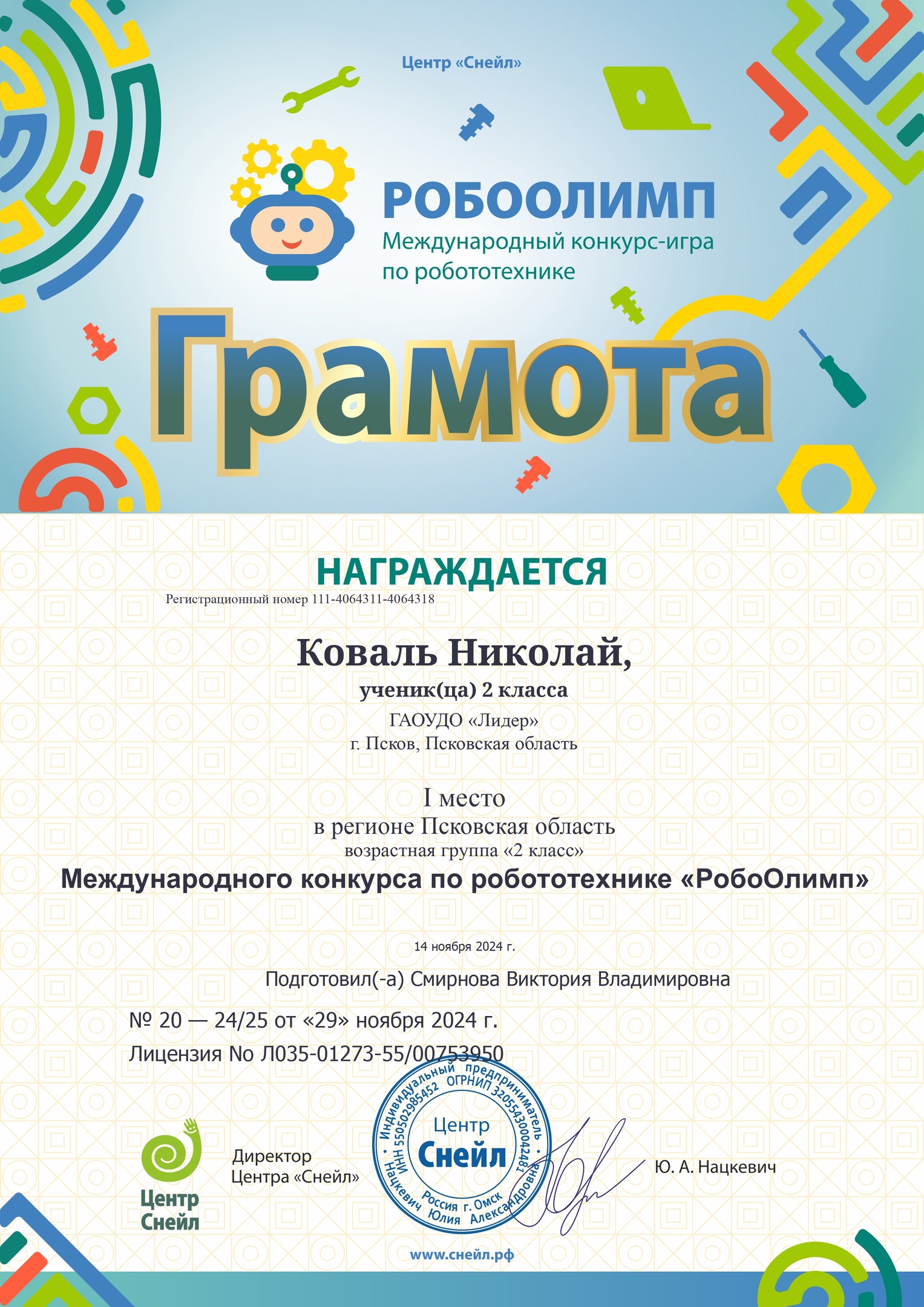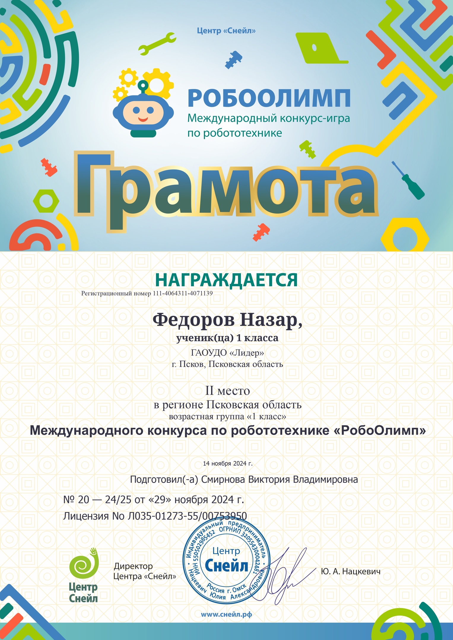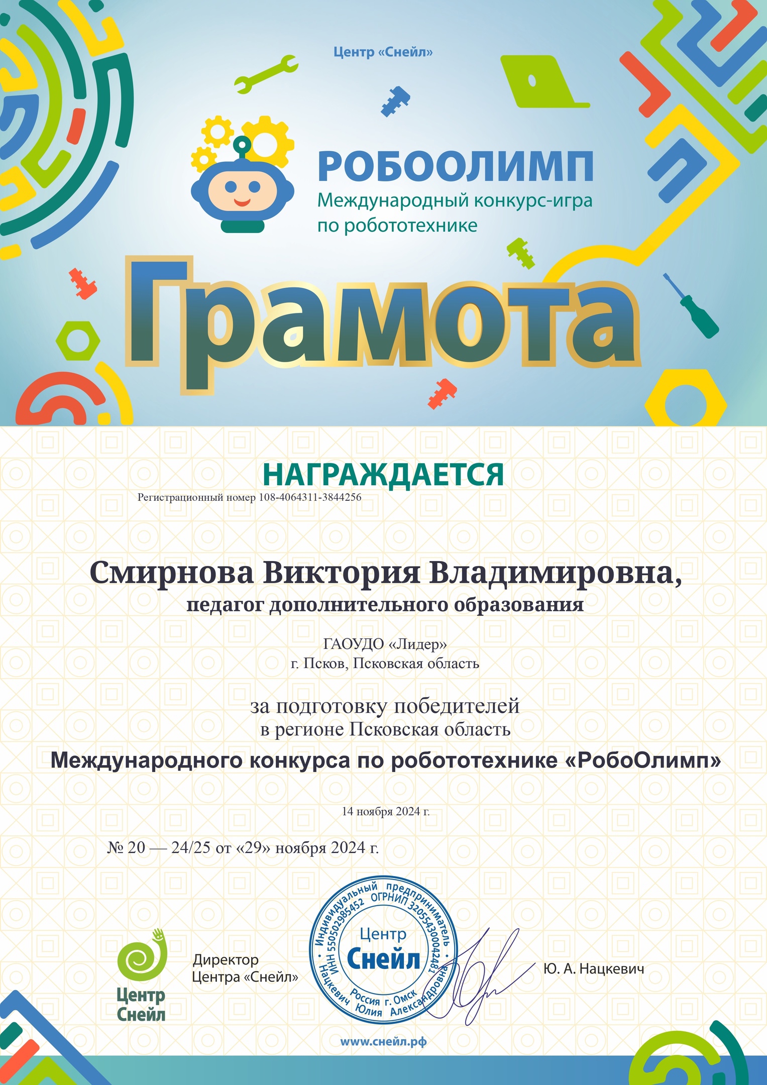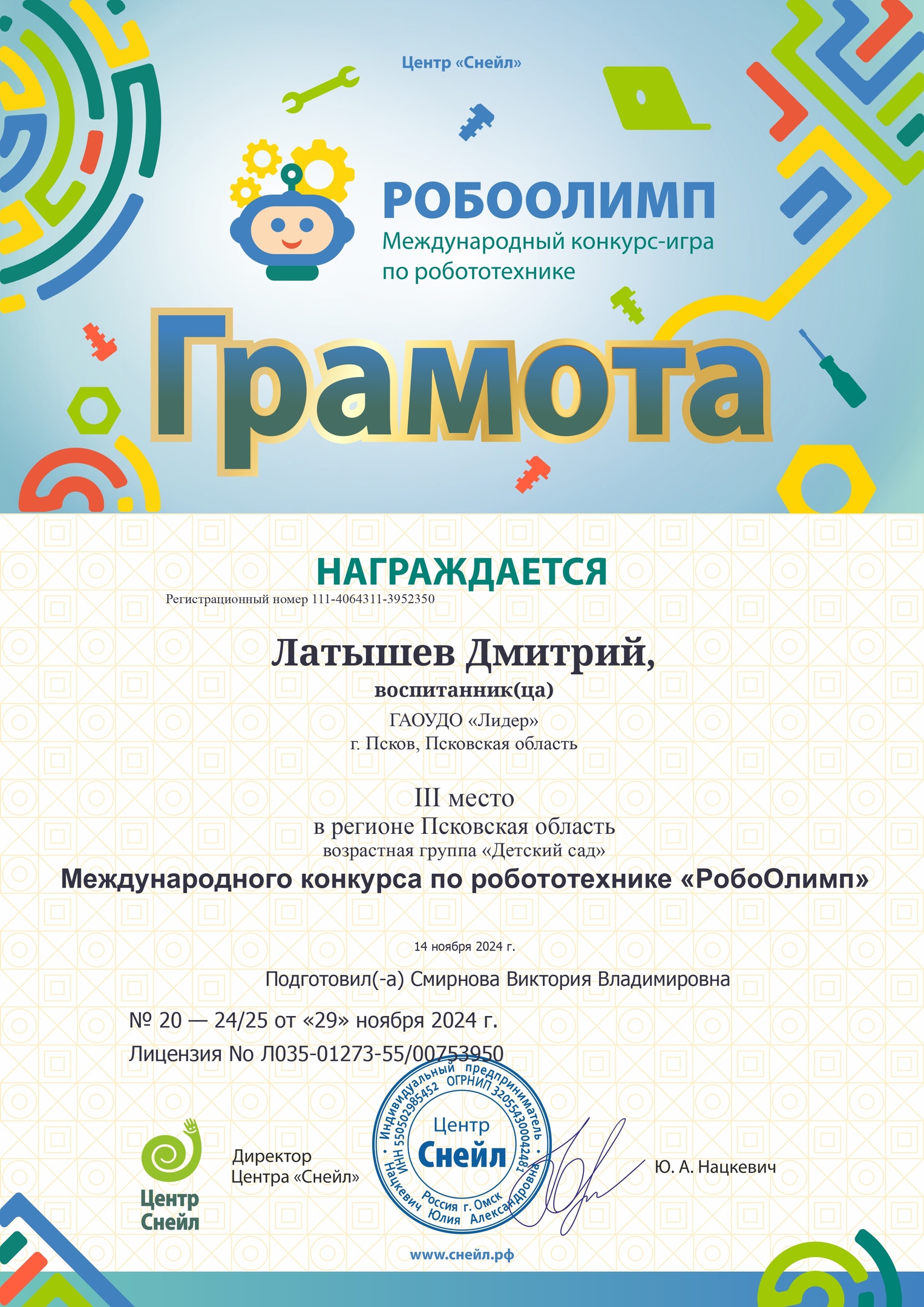Поздравляем обучающихся объединения «Юный инженер» структурного подразделения «Центр творческого развития «Радуга» ГАОУ ДО «Лидер» с дипломами победителей и призёров в Международном конкурсе по робототехнике «РобоОлимп»